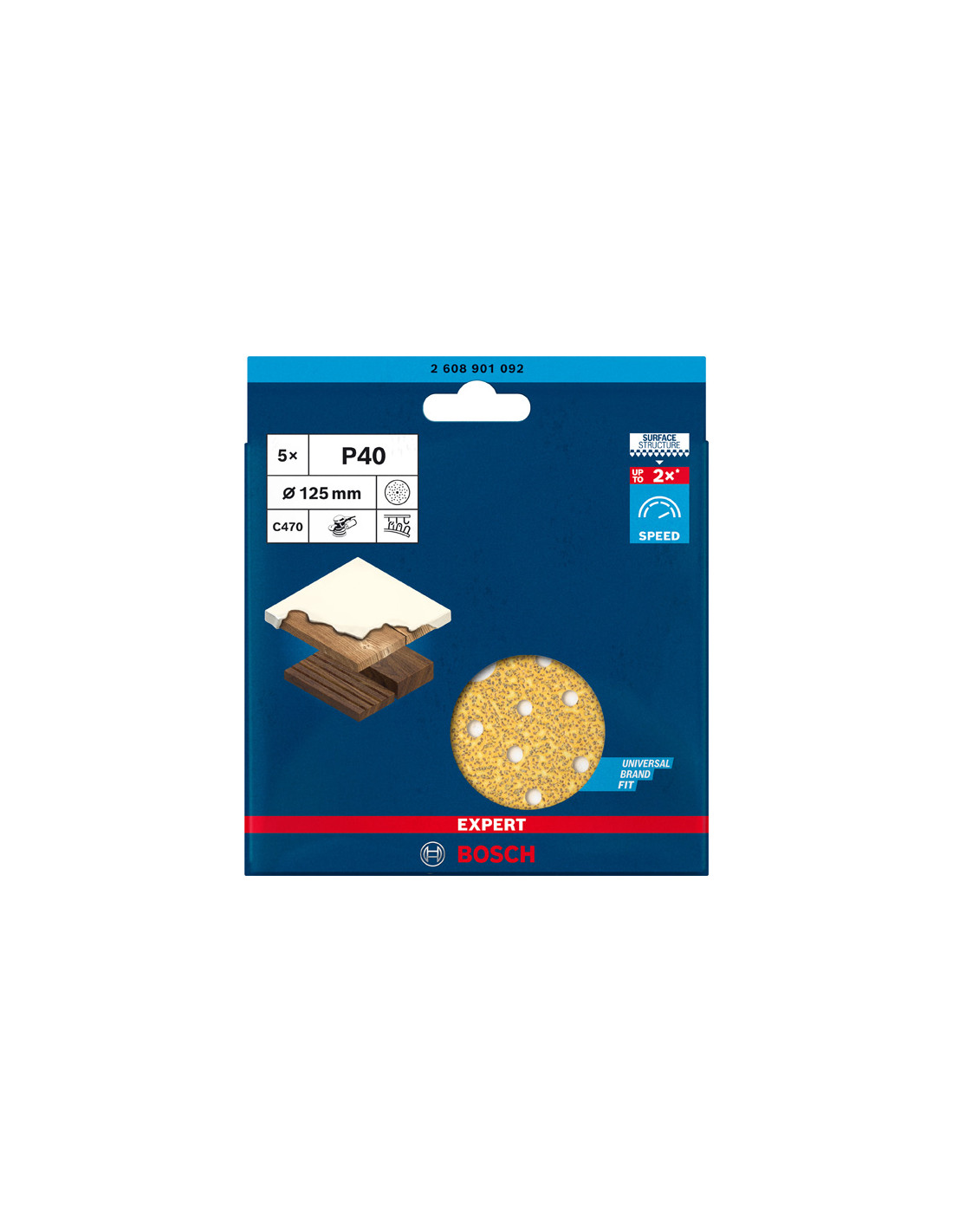 EXPERT C470 brusni papir z več luknjami za ekscentrične brusilnike, 125 mm, G 40, 5 kosov, Bosch 2608901092