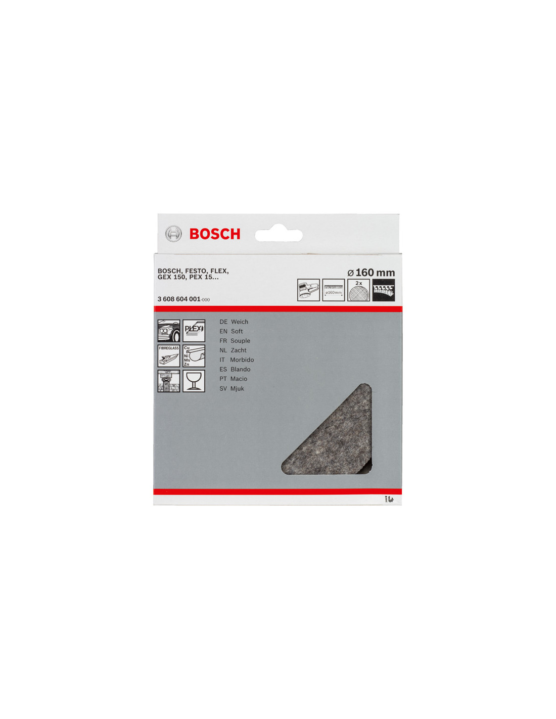 Polirna klobučevina za predpoliranje umazanih ali opraskanih površin s polirno ali brusilno pasto - Primerna je za uporabo z vibracijskimi brusilniki. Pritrditev s pomočjo sprijemalnega sistema