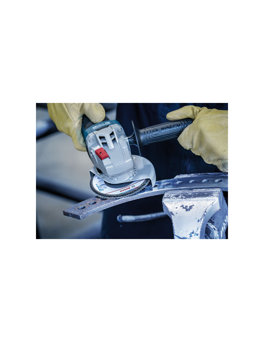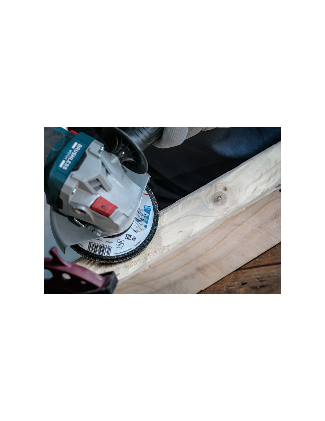 Zanesljivo grobo brušenje in odstranjevanje zarobkov - Zaradi modrih zrn iz aluminijevega oksida in stabilne podlage iz steklenih vlaken je X451 zanesljiva lamelna brusna plošča za jeklo, aluminij, nerjavno jeklo, neželezne kovine in les. Grobo zrnatost (40) uporabi za odstranjevanje materiala in zvarov, srednjo (60–80) za odstranjevanje zarobkov in rje, fino zrnatost (120) pa za čiščenje in končno obdelavo kovine. Finejšo zrnatost (80–120) uporabi za odstranjevanje zvarov, popravila, glajenje obdelovancev iz aluminija in nerjavnega jekla ali za brušenje in čiščenje lesa. S premerom izvrtine 22,23 mm za standardne kotne brusilnike s samozeklepno matico