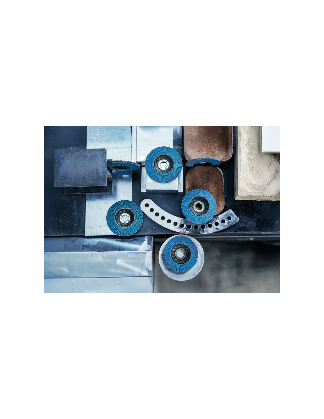 Zrnatost 40–60 za odstranjevanje materiala, zarobkov in grobo brušenje - Zanesljive lamelne brusne plošče profesionalnim uporabnikom zagotavljajo dosledno odstranjevanje materiala in dobro končno obdelavo površine. Izdelali smo ugodno in kakovostno lamelno brusno ploščo X451, s katero lahko kovinarji, prenovitelji, gradbeniki in domači mojstri obdelovance samozavestno počistijo, zbrusijo, jim odstranijo zarobke in jih končno obdelajo. Zaradi modrih zrn iz aluminijevega oksida in stabilne podlage iz steklenih vlaken je X451 zanesljiva lamelna brusna plošča za jeklo, aluminij, nerjavno jeklo, neželezne kovine in les. Grobo zrnatost (40) uporabi za odstranjevanje materiala in zvarov, srednjo (60–80) za odstranjevanje zarobkov in rje, fino zrnatost (120) pa za čiščenje in končno obdelavo kovine. Finejšo zrnatost (80–120) uporabi za odstranjevanje zvarov, popravila, glajenje obdelovancev iz aluminija in nerjavnega jekla ali za brušenje in čiščenje lesa. S premerom izvrtine 22,23 mm za standardne kotne brusilnike s samozeklepno matico