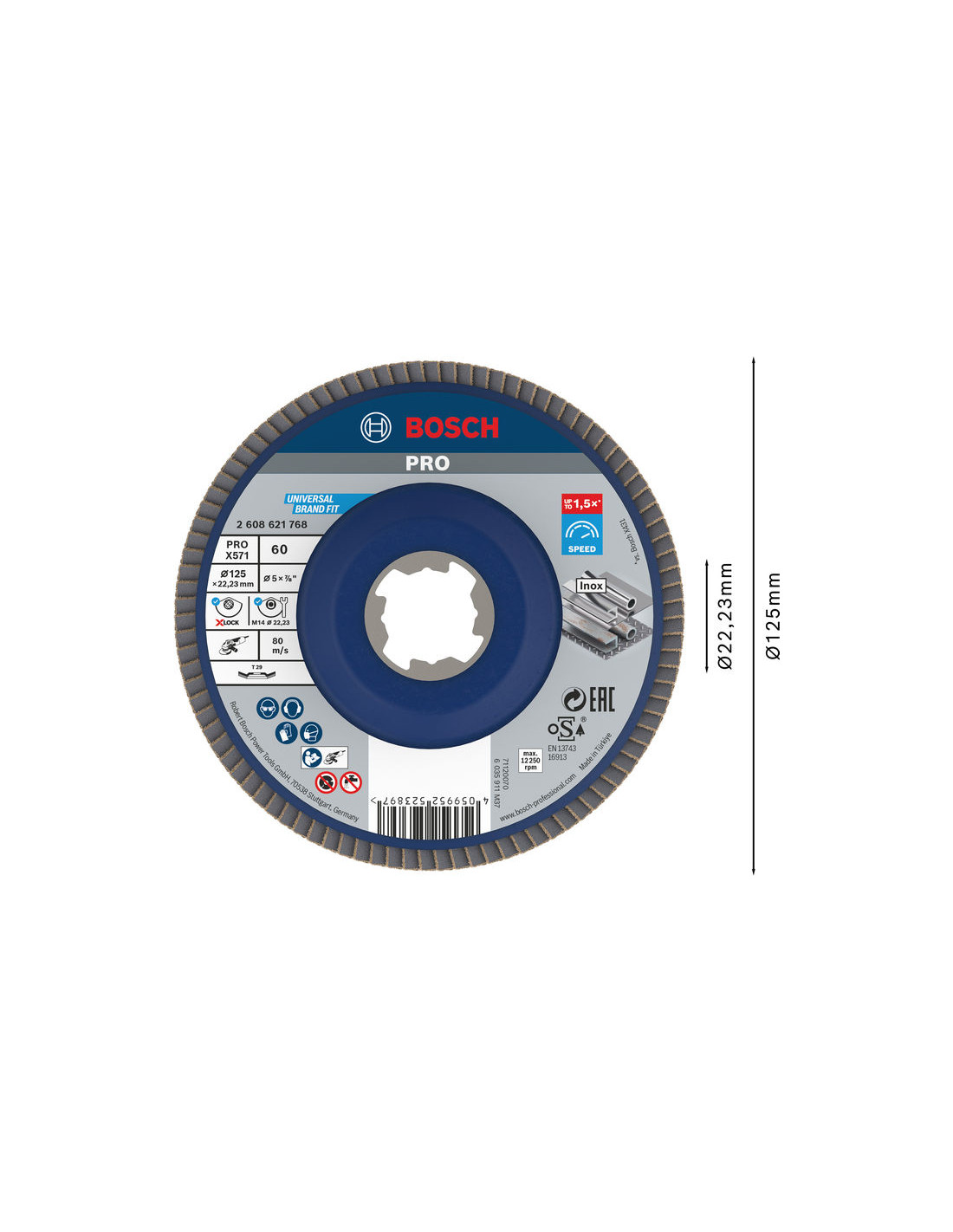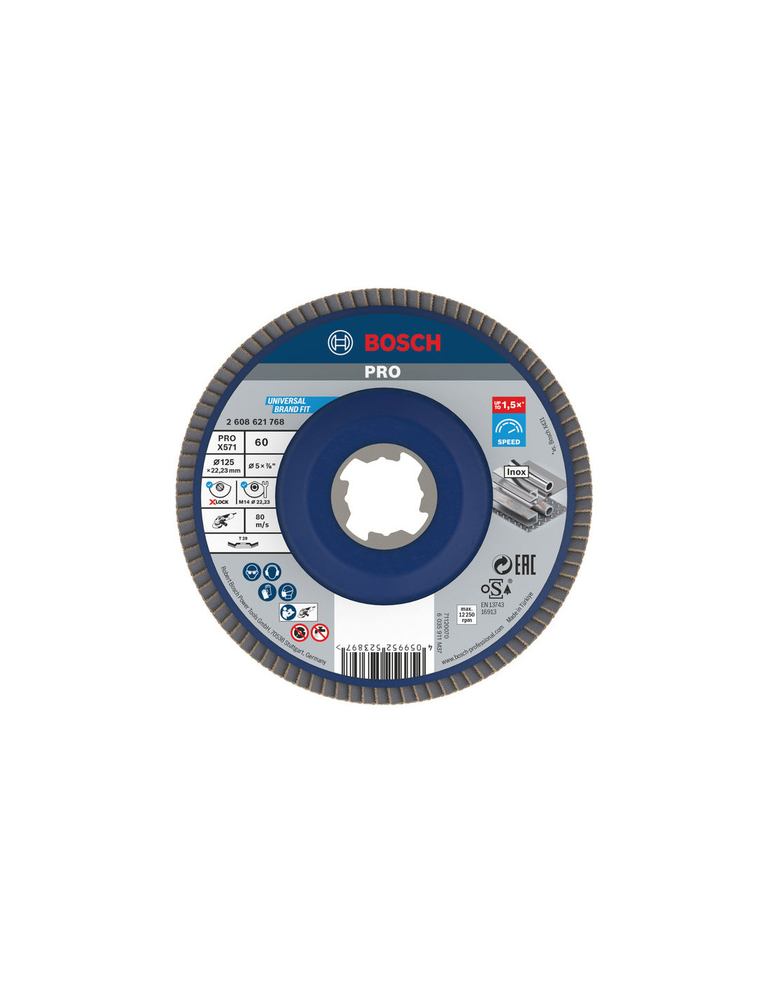Lamelna brusna plošča PRO X571, kotna, 125 mm, G60, X-Lock, Bosch 2608621768