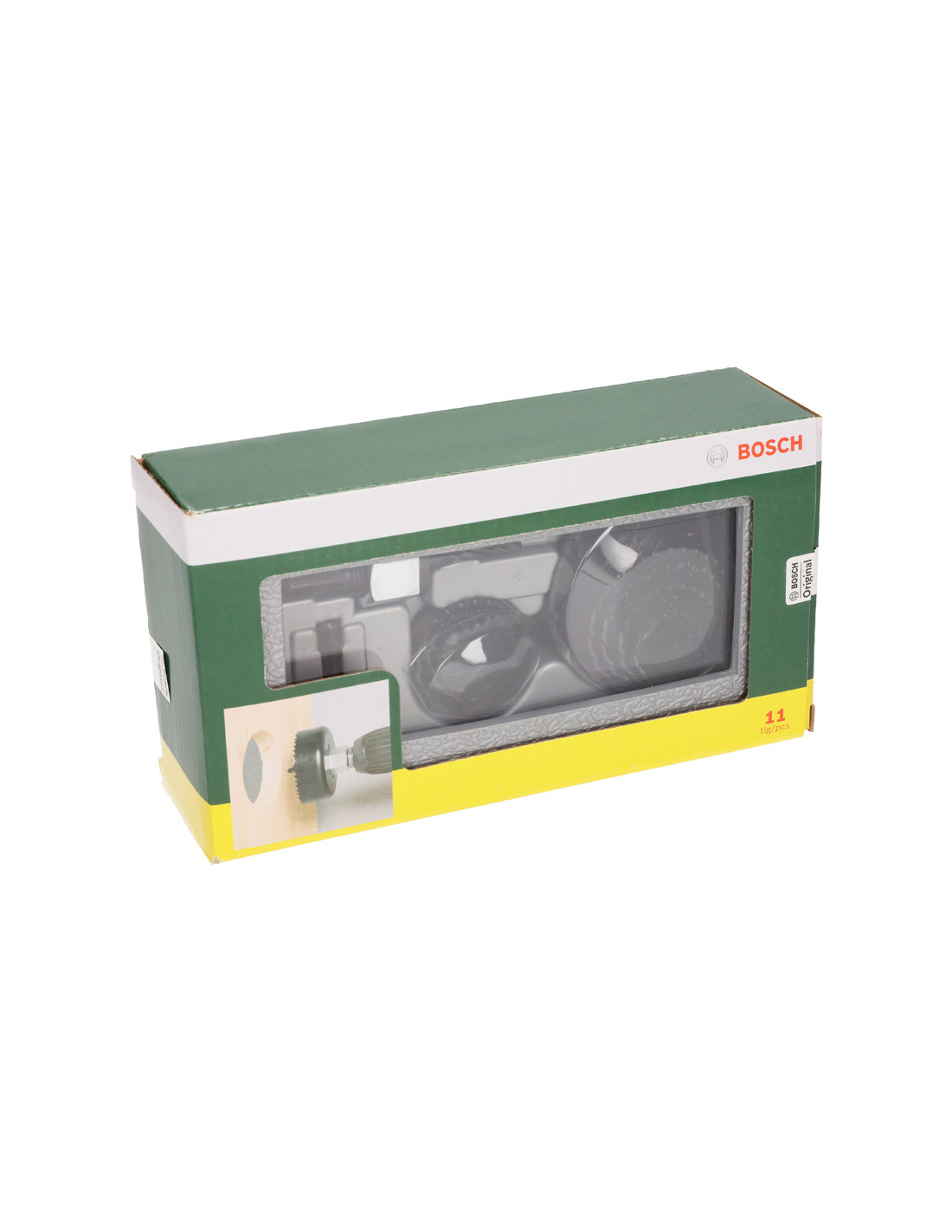 - 8 kron za izrezovanje lukenj z ojačanimi zobmi za rezanje lukenj v zid iz mavčnih plošč in mehki les pri nameščanju kablov in cevnih kanalov.