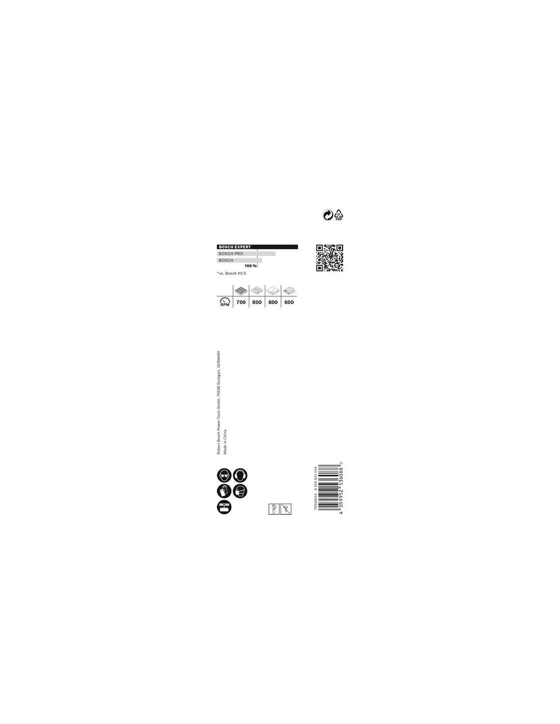 - List EXPERT Construction Material z le nekaj ogromnimi karbidnimi zobmi na jeklenem telesu zagotavlja pravi ugriz. Široke reže so optimizirane za hitro odstranjevanje ostružkov, tako da se hitro prebije skozi vse, od opeke do lesa in ivernih plošč. Boscheva tehnologija Carbide Technology je optimalna mešanica najtrših kovin in zagotavlja izjemno dolgo življenjsko dobo.