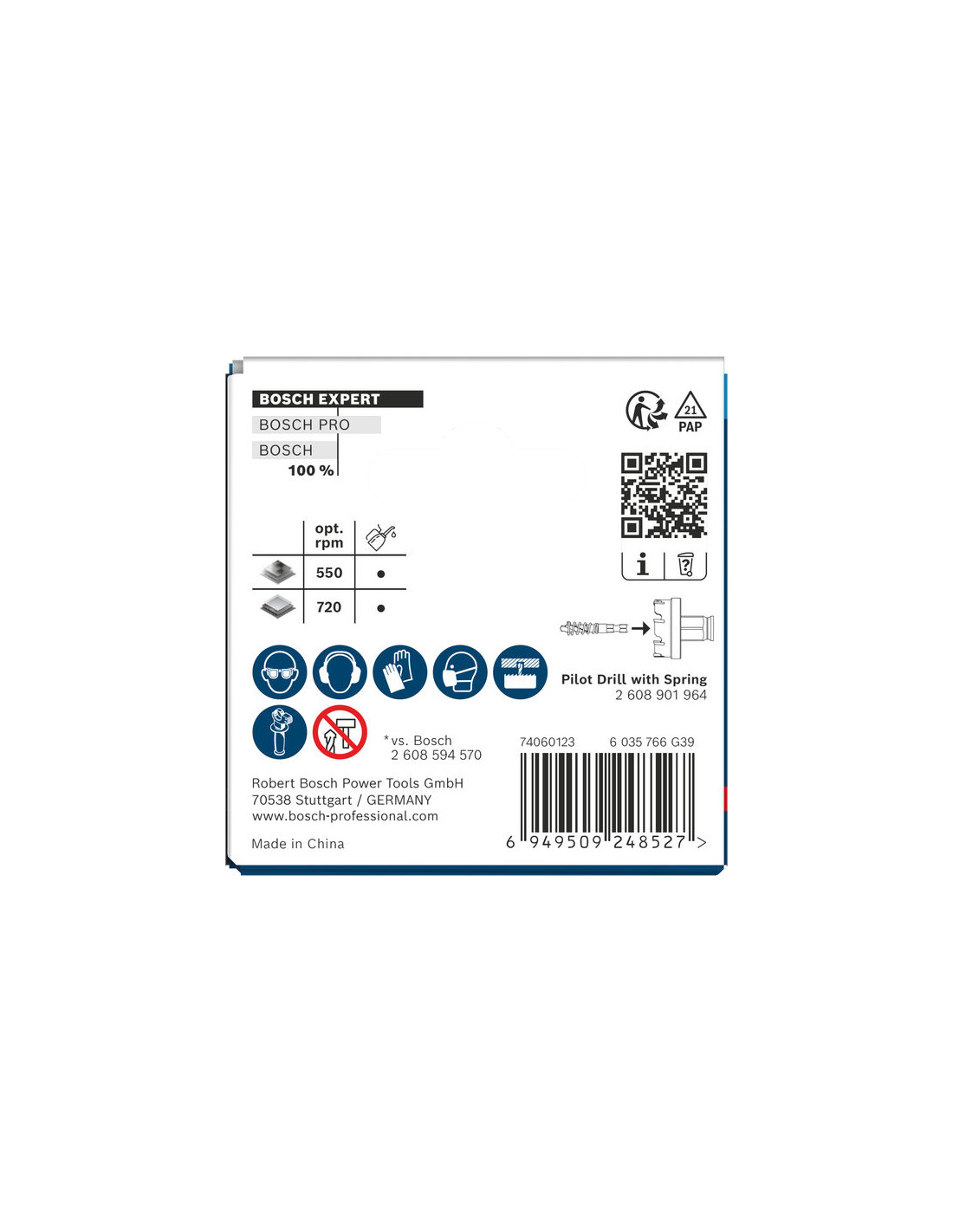- Do 50-krat daljša življenjska doba kot pri žagi za izrezovanje lukenj s kataloško št. 2608594570 pri vrtanju zahtevnih materialov.