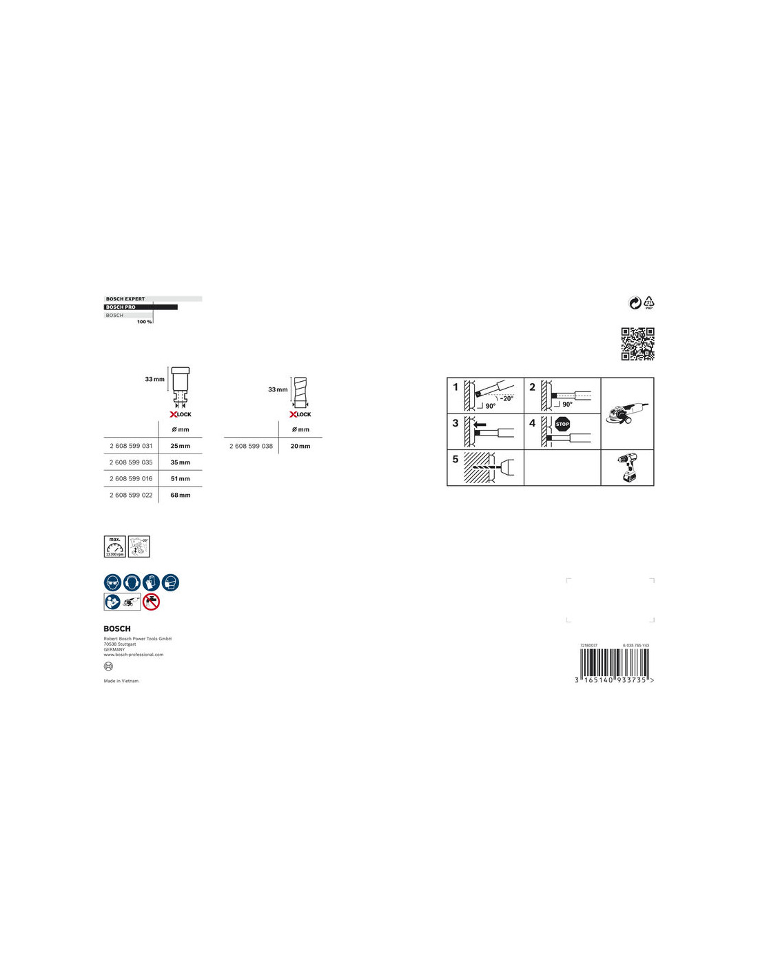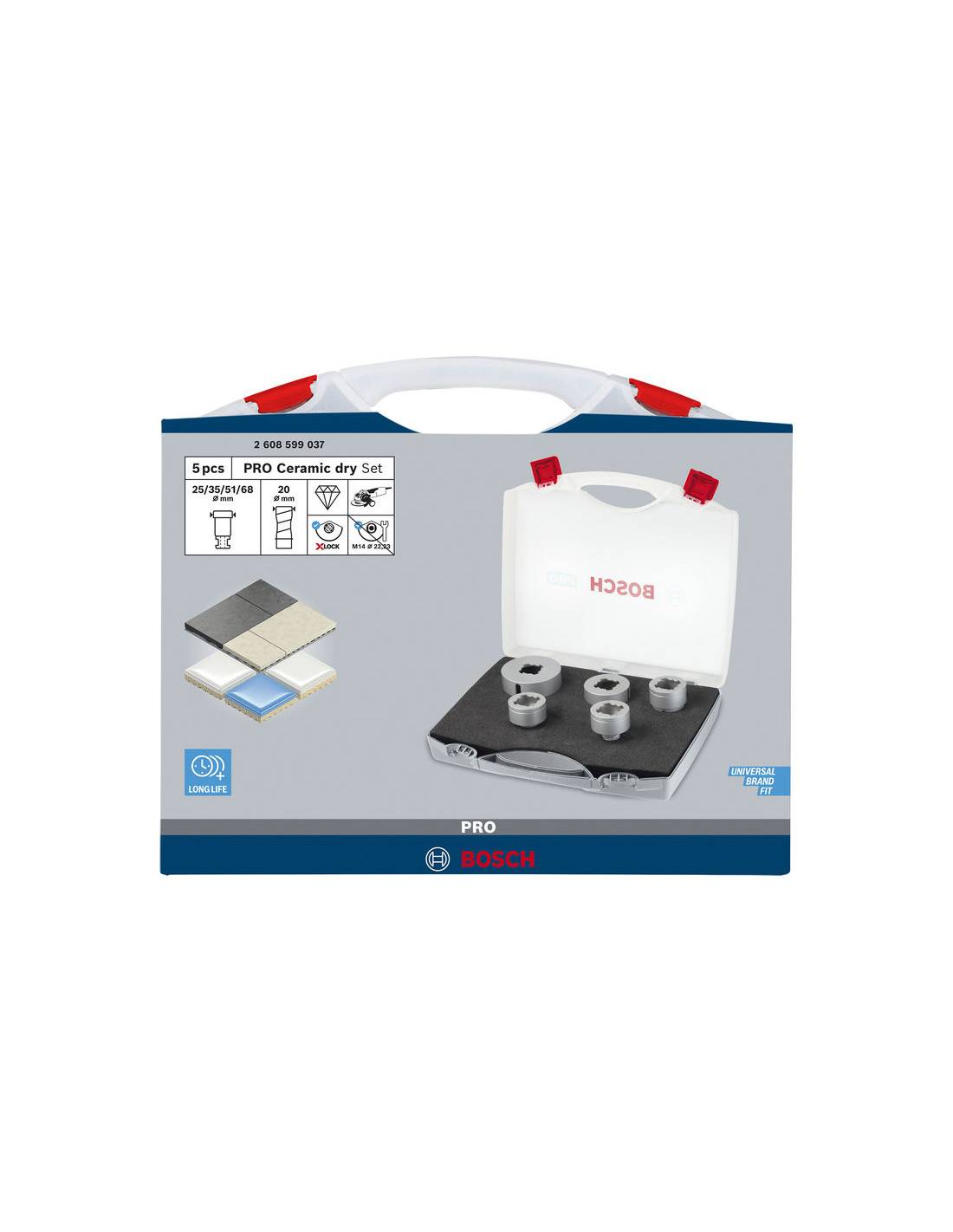 Komplet vrtalnih kron PRO Ceramic dry X-Lock, 68 x 33, 51 x 33, 35 x 33, 25 x 33, 20 x 33 mm, 5 kosov, Bosch 2608599037