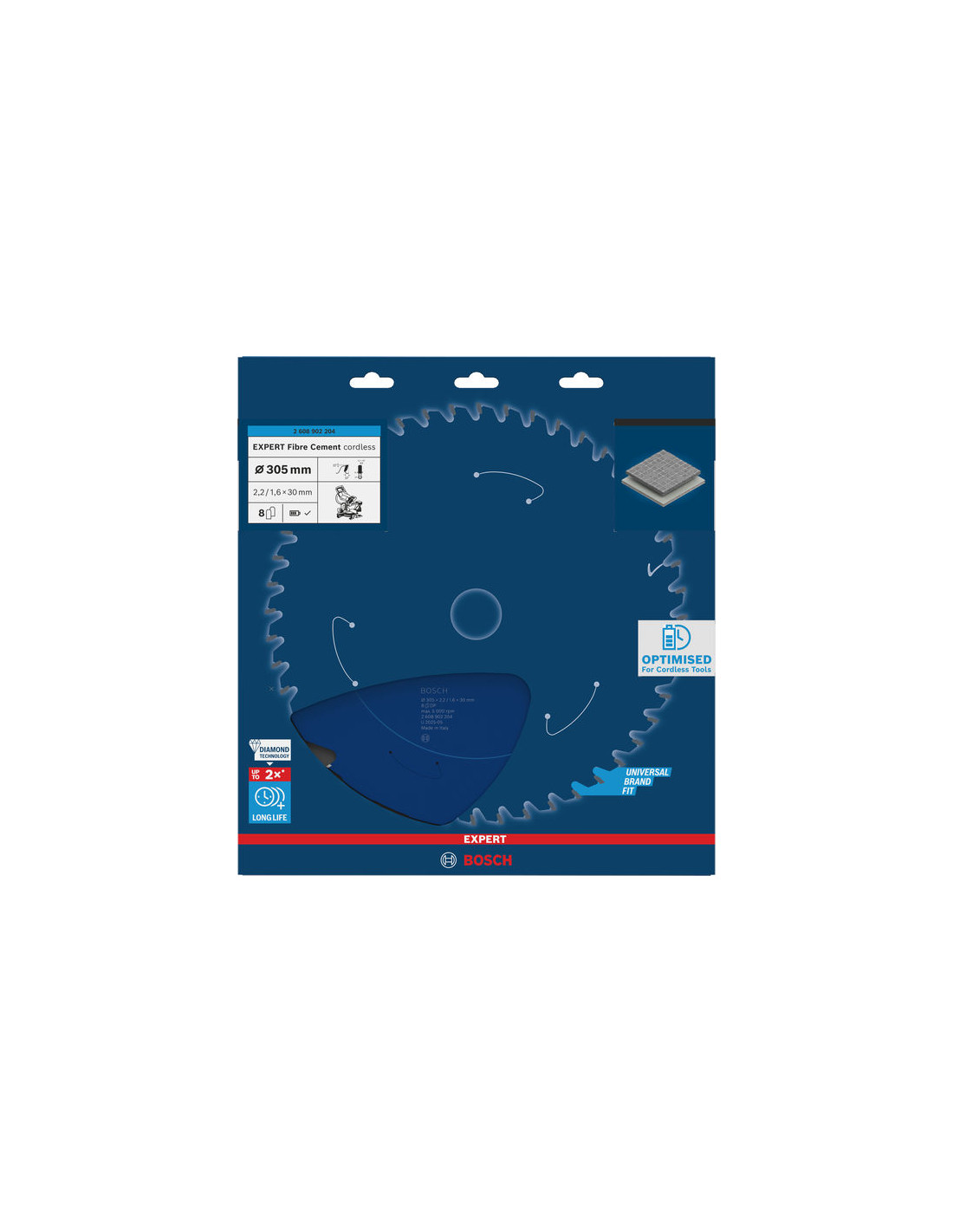 List za krožno žago EXPERT Fibre Cement cordless, 305 x 2,2/1,6 x 30 mm, T8, Bosch 2608902204
