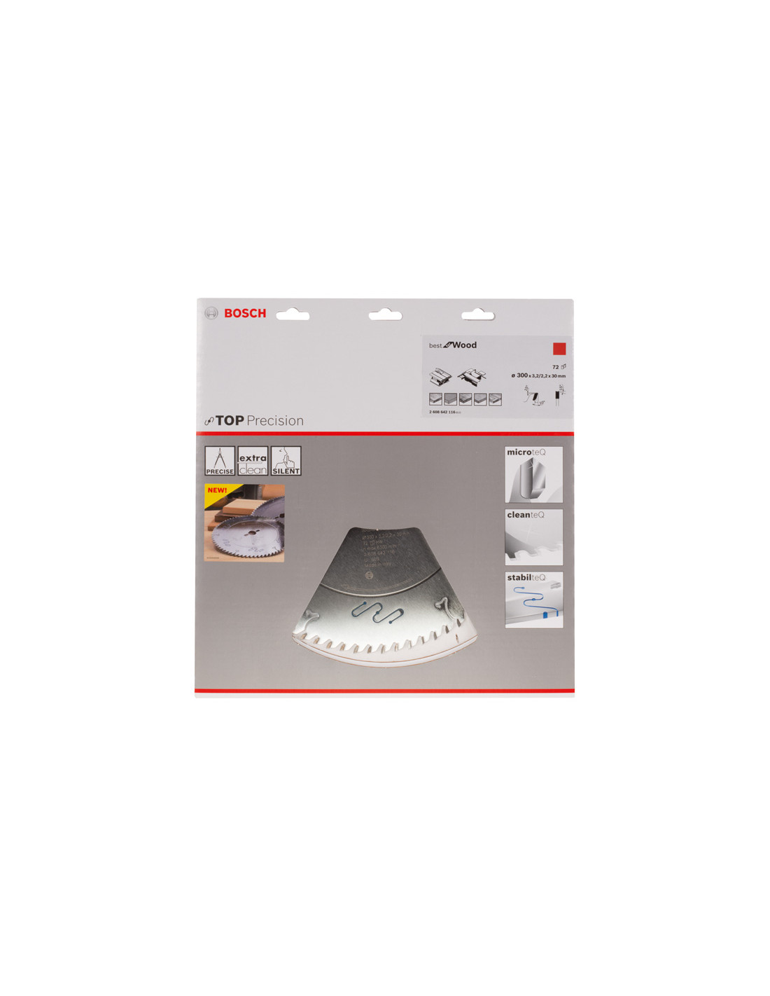 Zahtevne naloge - List za krožno žago Best for Wood zagotavlja industrijsko raven kakovosti in je primeren za zahtevno rezanje lesa. Edinstveni, izjemno trdi zobje Microteq lastne proizvodnje iz zelo obstojne karbidne trdine zagotavljajo visoko zmogljivost. Visoko kakovost lista še dopolnjuje prevleka Cleanteq, ki zmanjša prijemanje lepil in smol, s tem pa zagotavlja izjemno čisto rezanje. Še več, ta prevleka ohranja ploščo lista hladno in jo ščiti pred korozijo. Poleg tega je list opremljen z zarezami s poliuretanom Stabilteq za dušenje vibracij, ki z znatnim zmanjšanjem hrupa in tresljajev zagotavljajo natančno rezanje brez napora. List za krožno žago je namenjen za rezanje vseh vrst lesa in lesenih materialov. Združljiv je z vodoravnimi in navpičnimi formatnimi žagami. Listi za krožno žago Best for Wood z ozobjem oblike ATB (Alternate Top Bevel) je glede na število zob primeren za različne obdelave: liste z večjim številom zob odlikujejo čisti rezi, listi z manjšim številom zob pa omogočajo zanesljivo in učinkovito rezanje. Luknja deluje z reducirnimi obroči ali brez njih, da ustreza različnim velikostim
