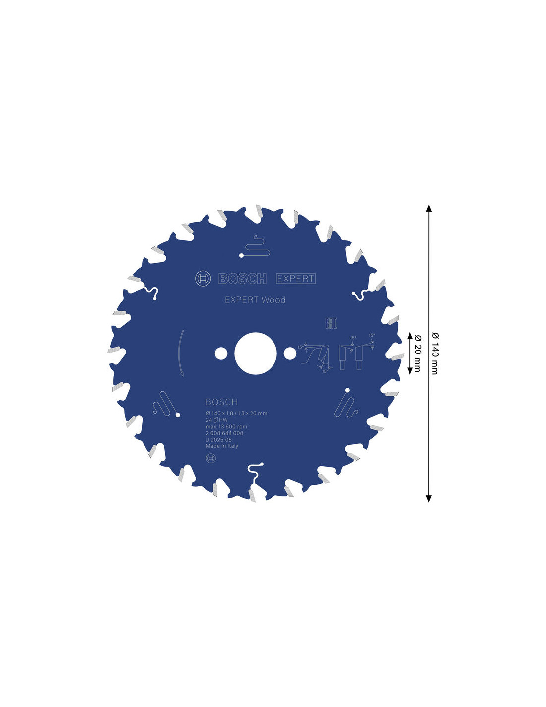 List za krožno žago EXPERT Wood, 140 x 1,8/1,3 x 20 mm, T24, Bosch 2608644008