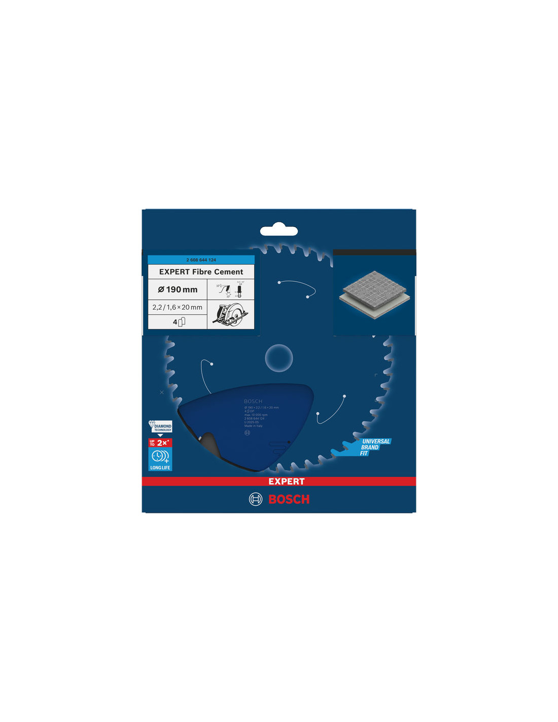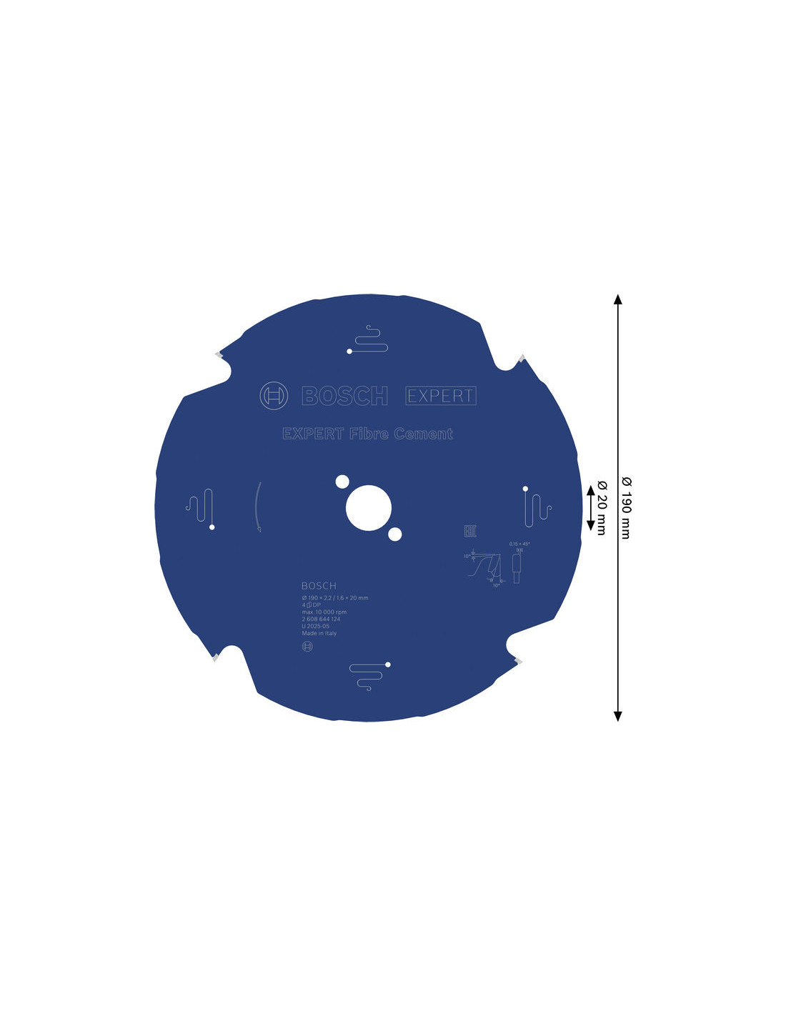 List za krožno žago EXPERT Fibre Cement, 190 x 2,2/1,6 x 20 mm, T4, Bosch 2608644124