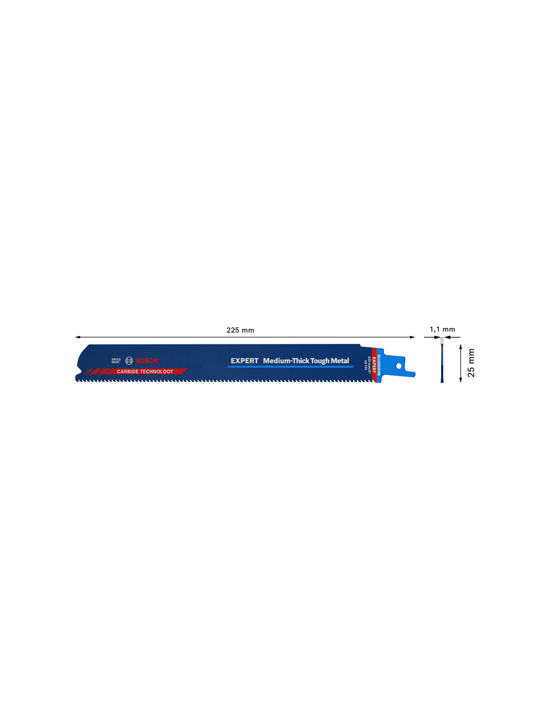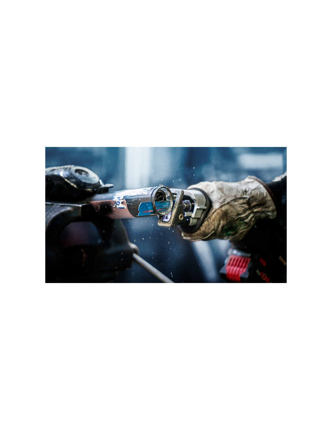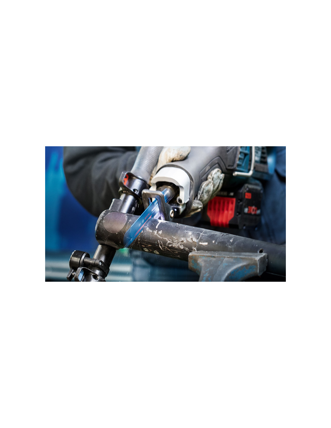 Do 50-krat daljša življenjska doba kot pri listu Bosch S1122BF za obdelavo trdnih materialov - Vodovodarji, restavratorji in delavci za rušilna dela vedo, da je rezanje jeklenih cevi in profilov težka naloga, tudi z zmogljivo sabljasto žago. Srednje debela kovina lahko med rezanjem močno vibrira. EXPERT Medium-Thick Tough Metal te kovine ne reže le učinkovito in z minimalnimi vibracijami, temveč zagotavlja tudi izjemno življenjsko dobo. Boscheva tehnologija Carbide Technology zagotavlja izjemno vzdržljivost lista. List za sabljasto žago Bosch EXPERT Medium-Thick Tough Metal je naš specialist za srednje debelo jeklo – njegovi karbidni zobje imajo manjši razmak kot njegov debel kovinski dvojnik. To pomeni, da se posamezni zobje ne ujamejo v tanjše plasti pločevine in cevi srednjega premera. Specializiran, vrhunski list z lahkoto opravlja dela, za katera je namenjen. Vsak obrtnik, ki redno dela s kovinami srednje debeline, bo cenil list za sabljasto žago Bosch EXPERT Medium-Thick Tough Metal. Primerno za vsa S-vpenjalna stebla za sabljaste žage