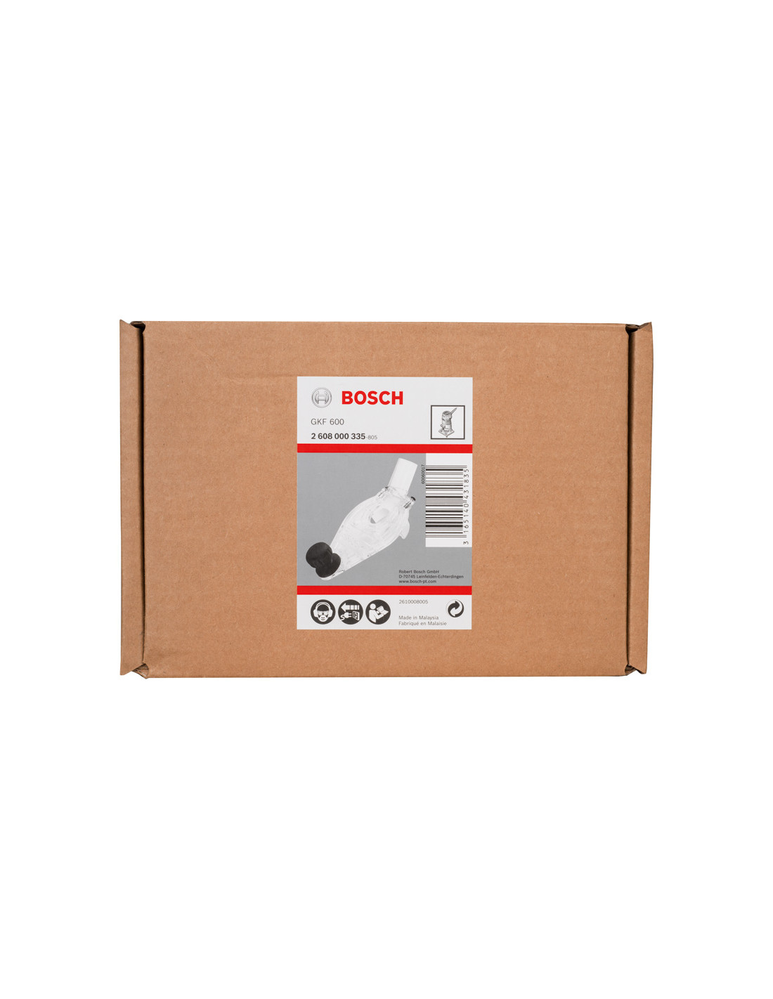 Priključek za sesalnike - Osnovna plošča povezuje rezkalnik s sesalnikom. Ima ročaj in nastavek za odsesavanje prahu. Plošča je združljiva z Boschevim robnim rezkalnikom GKF 600 Professional.
