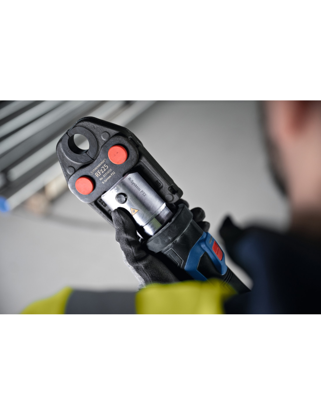 Če iščeš akumulatorsko orodje za stiskanje z močjo, s katerim je mogoče brez težav obdelati cevi veliko različnih premerov, je GPT 18V-32 Professional prava izbira. S silo 32 kN je mogoče zatesniti cevi s plastičnimi fitingi premera do 110 mm in kovinskimi fitingi premera do 54 mm. Hkrati je to stiskalno orodje udobno za delo: s hitrimi cikli stiskanja je mogoče stisniti fitinge v manj kot 5 sekundah, odvisno od premera cevi. 360-stopinjska vrtljiva glava omogoča enostavno manevriranje v tesnih prostorih, izjemno svetla delovna svetilka pa osvetljuje temne prostore. Poleg tega je med ciklom stiskanja na voljo LED-lučka stanja z vizualnimi povratnimi informacijami, ki potrjuje uspešen cikel in opozarja na morebitne napake.