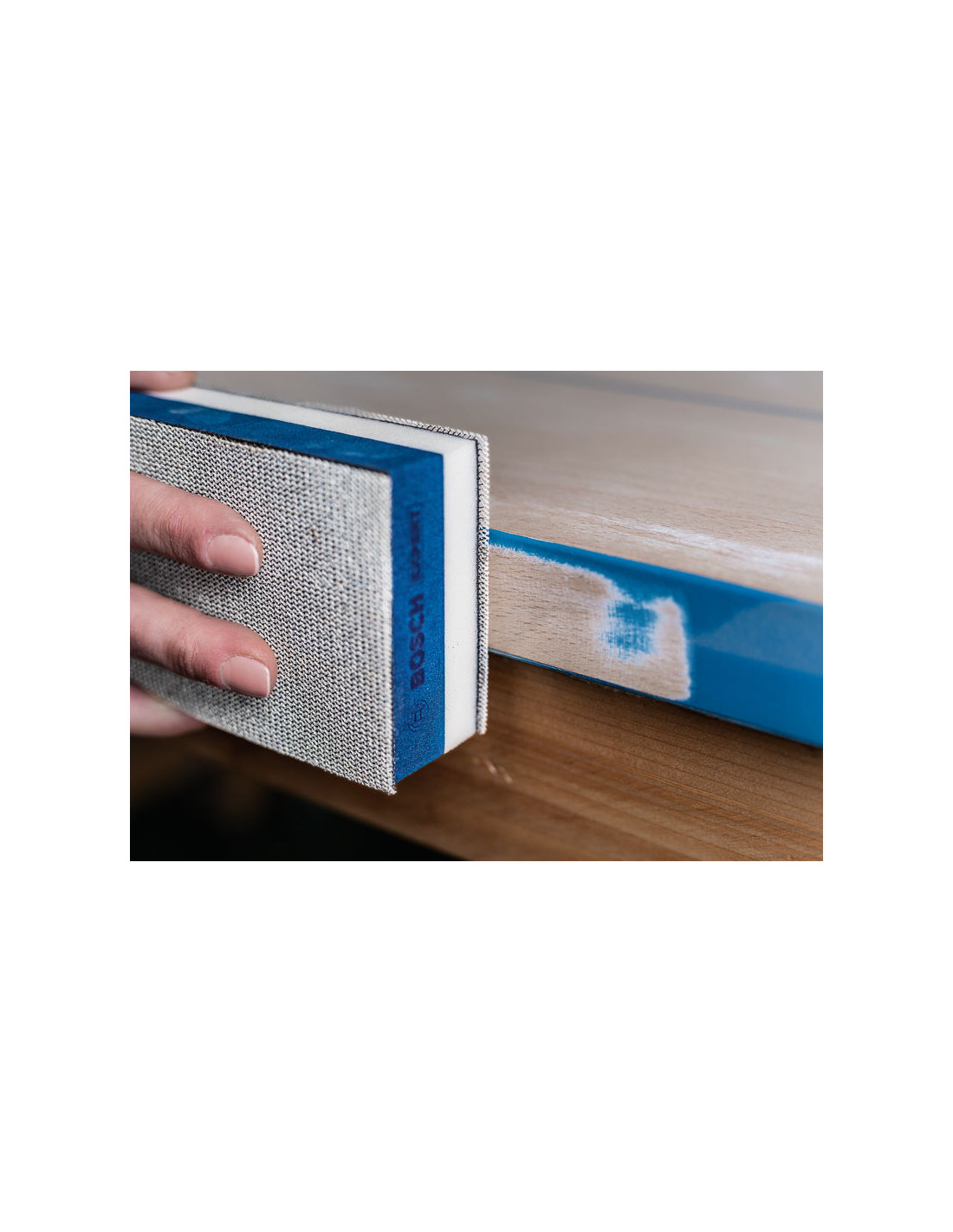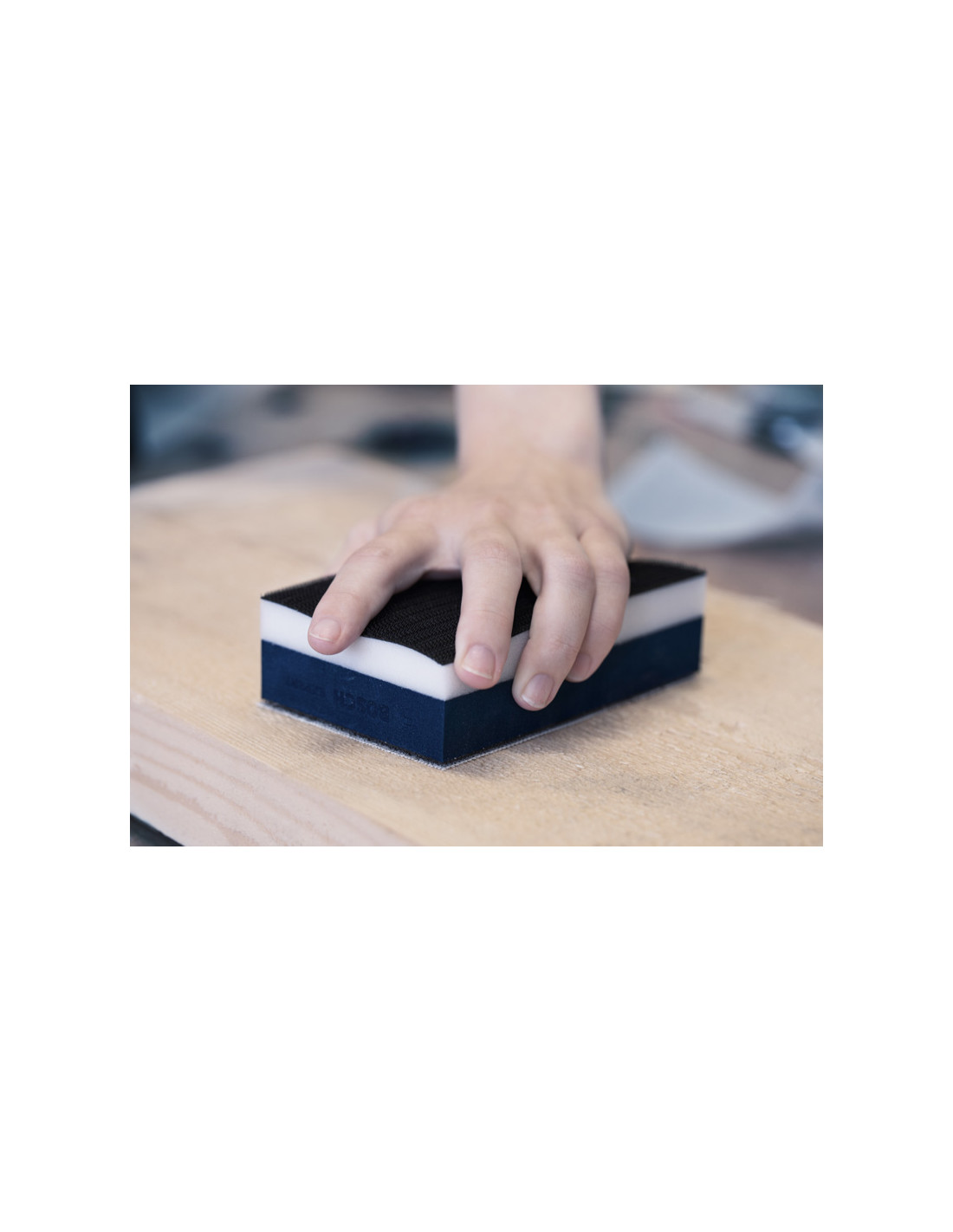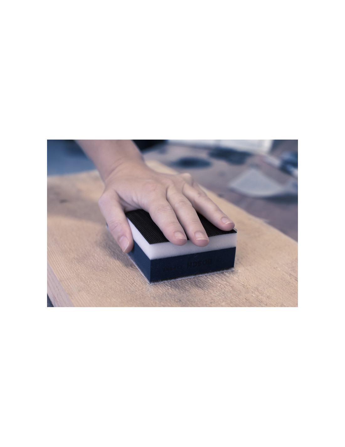 Trije načini uporabe v 1 brusnem bloku - Pri brušenju obdelovancev, ki imajo tako ravne površine kot tudi krivine in robove, potrebuješ različne brusne bloke, da najdeš pravega za obliko, ki jo obdeluješ. Da bi bilo delo čim bolj enostavno, smo združili trdo in mehko stran brusnega bloka EXPERT M480 Dual Density. Uporabljaš ga lahko tako za mokro in suho brušenje površin kot tudi krivin in robov z malo prahu. Brusni blok EXPERT M480 Dual Density je vsestranski brusni blok za brušenje obdelovancev kompleksnih oblik. Blok ima stran z visoko gostoto za brušenje površin in stran z nizko gostoto za prilagajanje krivinam in robovom. Obe strani imata pritrdilno tkanino, da lahko brusni papir zlahka pritrdiš in odstraniš. Boscheva tehnologija Particle Control zagotavlja, da gre prah skozi brusno mrežo, ne da bi jo zamašil. Brusni blok EXPERT M480 Dual Density je učinkovit pribor za tesarje, pleskarje in izvajalce suhomontažne gradnje, ki potrebujejo vsestranski brusni blok za brušenje površin, obrob in robov z malo prahu. Pritrditev s pomočjo sprijemalnega sistema