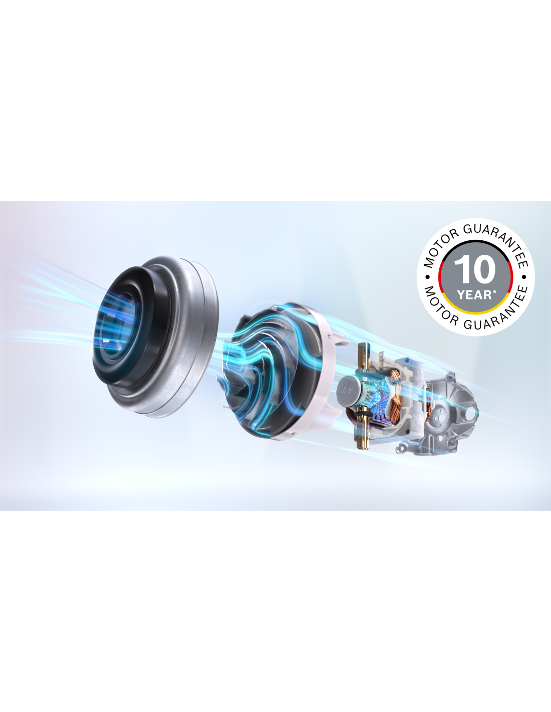 - Desetletno jamstvo na motor: nenehno visoka učinkovitost delovanja z v Nemčiji izdelano tehnologijo motorja Bosch