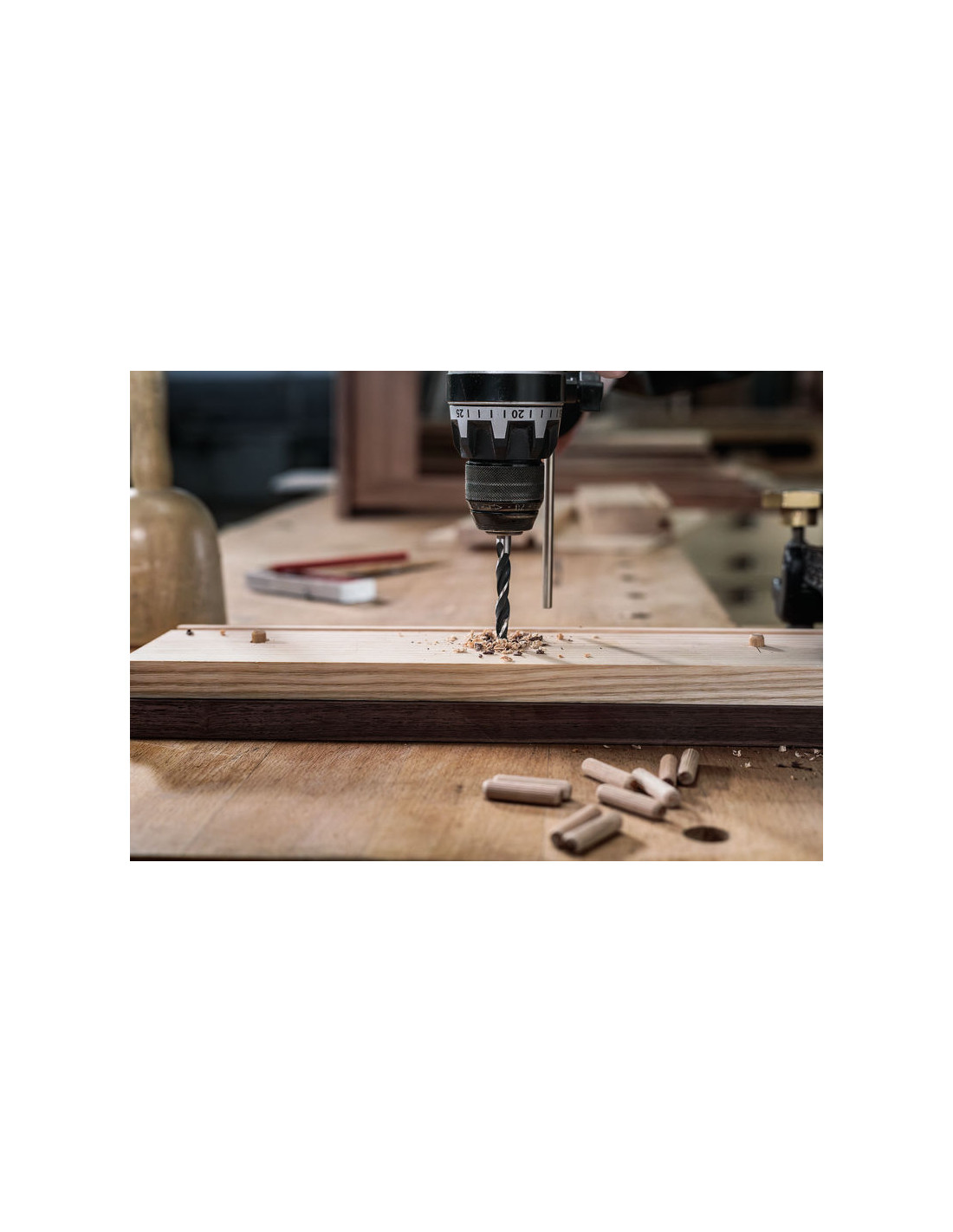Zasnovan za vrtanje v les - Vrtanje novih lukenj točno tam, kjer jih potrebujete, je lahko pravi izziv. Toda ne s spiralnimimi koničastimi svedri PRO Wood, zasnovanimi za natančno vrtanje v trd in mehak les. Spiralni koničasti svedri PRO Wood so odlična izbira za obdelovalce lesa, ki potrebujejo natančne svedre za vrtanje lukenj in montažnih izvrtin v trdem in mehkem lesu. Svedri imajo centrirno ali spiralno konico, ki preprečuje, da bi se konice premikale, ko začneš vrtati novo luknjo. Dve spirali učinkovito odstranjujeta ostružke in zagotavljata, da izvrtaš potrebno velikost luknje. Ostre ostroge zmanjšajo cefranje, tako da lahko lažje izvrtate čiste in natančne luknje. Cilindrično vpenjalno steblo, primerno za vse tričeljustne vpenjalne vrtalne glave