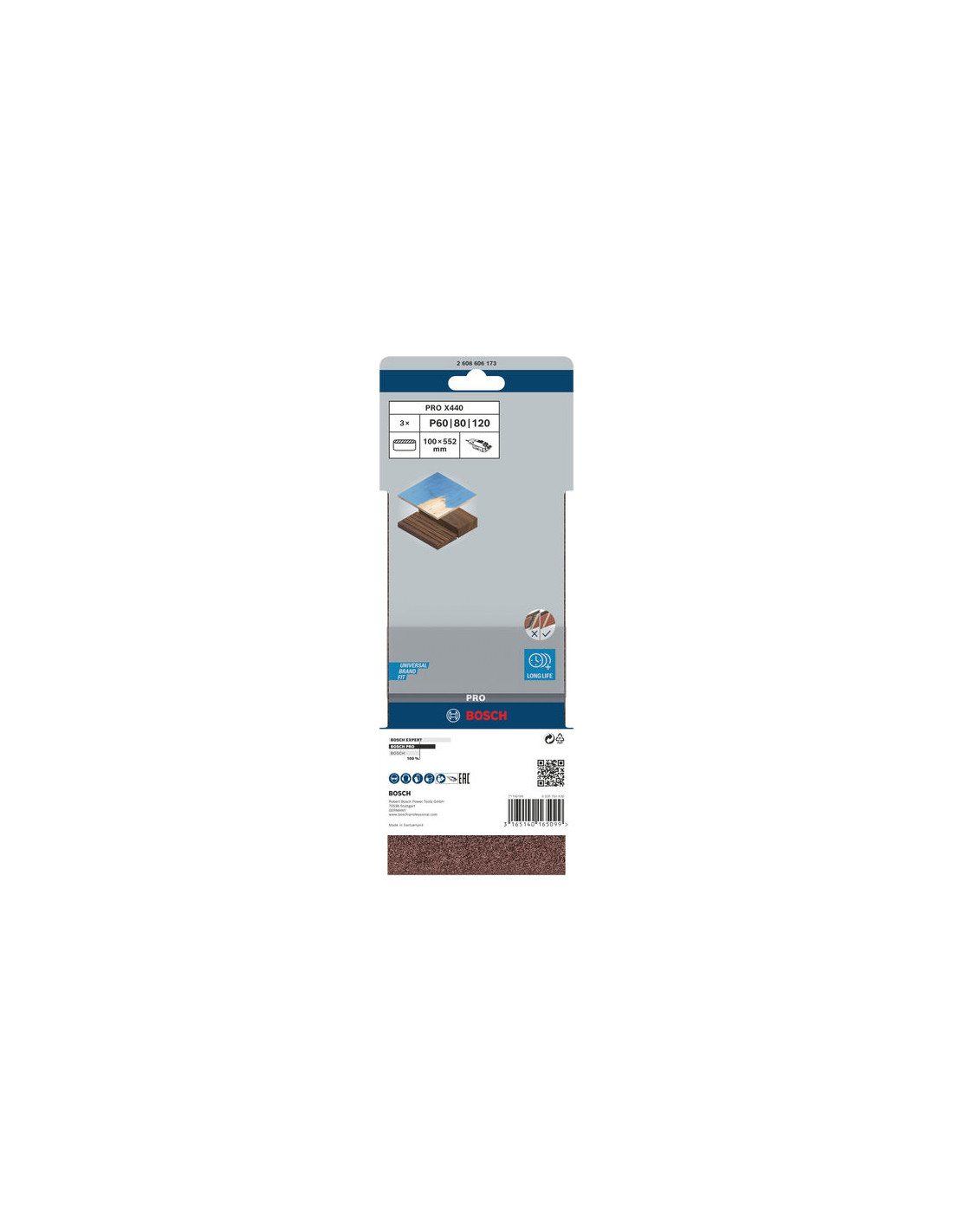 Brusni trak PRO X440, 100 x 552 mm, G60, G80, G100, 3 kosi, Bosch 2608606173