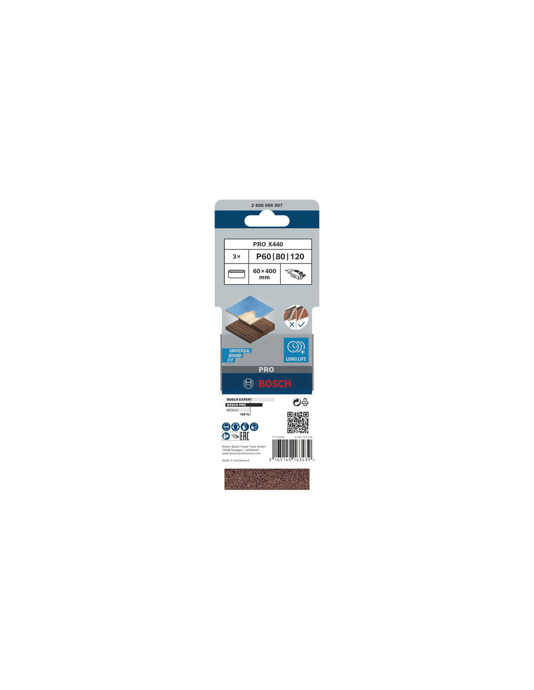 Brusni trak PRO X440, 60 x 400 mm, G60, G80, G100, 3 kosi, Bosch 2608606007