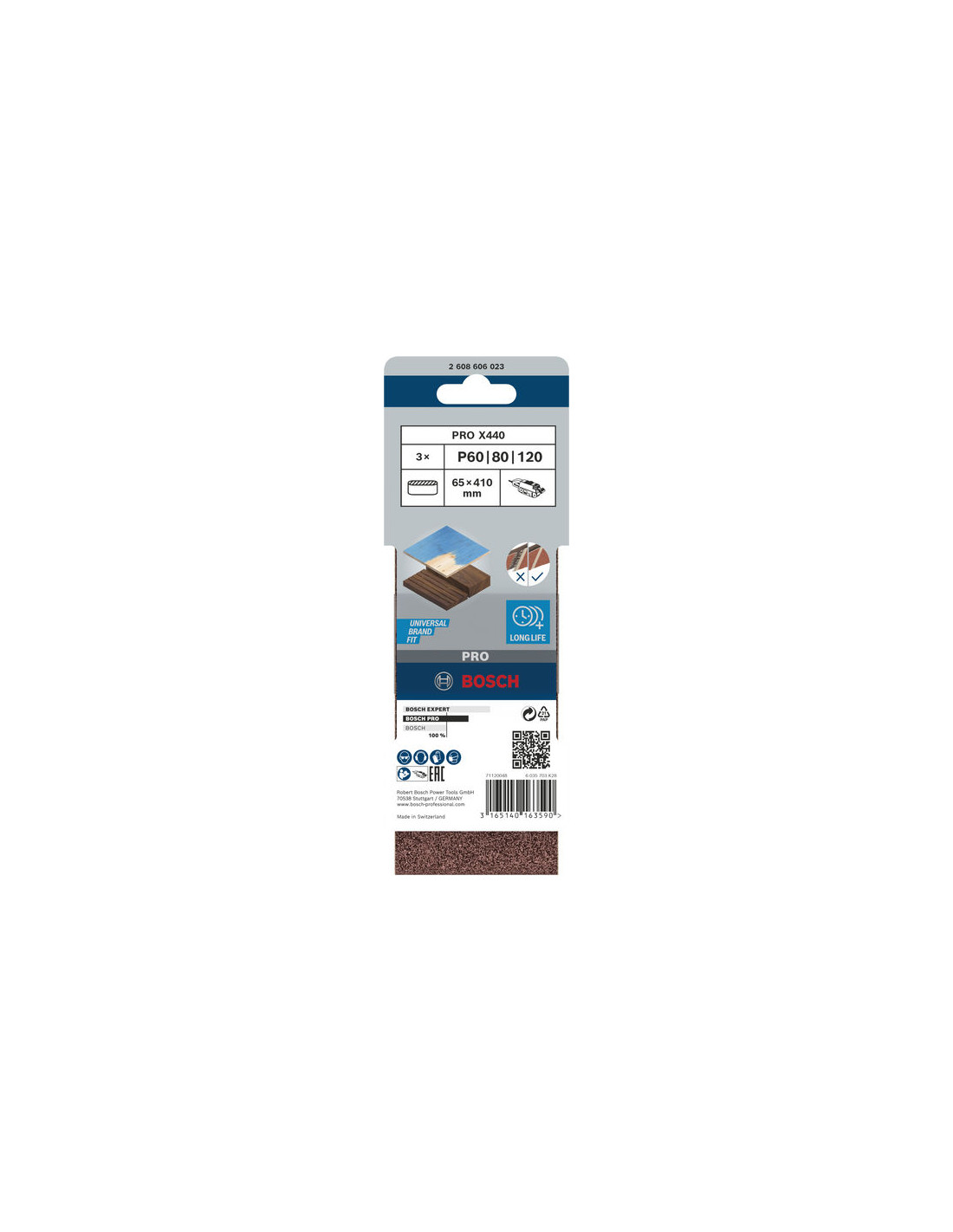 Brusni trak PRO X440, 65 x 410 mm, G60, G80, G100, 3 kosi, Bosch 2608606023