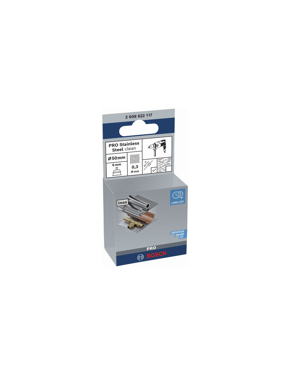 Lončasta ščetka za čiščenje PRO Stainless Steel clean, ravno vpenjalno steblo, 50 x 0,3 mm, Bosch 2608622117