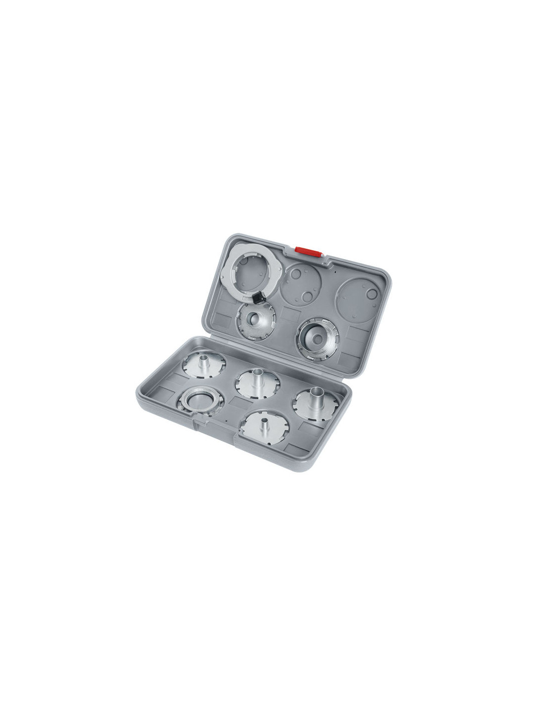 Natančni vodilni rezkarji - Komplet vodil za šablone PRO ponuja najbolj priljubljene vodila za šablone, vključno z velikimi in majhnimi rezkarji za rogljičenje in polmerom, ki so zasnovana za zanesljivo in natančno delovanje. Komplet je nameščen v močni škatli, ki vam pomaga, da so vodila za šablone varna in dobro organizirana. Šablone lahko kliknete na hitro zamenljivo osnovno ploščo rezkalnika Bosch. Če pa morate uporabiti vodilo za šablono z navoji, lahko uporabite adapter za hitro zamenjavo, da ga enostavno namestite.